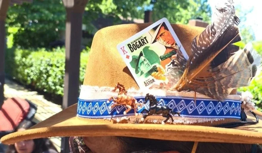 Create a custom one of a kind hat that is uniquely yours. Start with a Western or Rancher style hat, add fabrics, beaded band, feathers, flowers, pins, playing cards. The end result is truly magical.